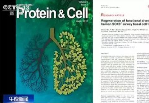 國(guó)家重點(diǎn)研發(fā)計(jì)劃干細(xì)胞項(xiàng)目首席科學(xué)家、同濟(jì)大學(xué)左為教授團(tuán)隊(duì)近日發(fā)表了題為 Regeneration of functional alveoli by adult human SOX9+ airway basal cell transplantation 的研究論文,在國(guó)際上率先報(bào)道了利用成年人體肺干細(xì)胞培養(yǎng)和移植技術(shù)再生肺臟的突破性工作。該成果以封面文章的形式發(fā)表在最新一期的 Protein & Cell 期刊上。央視新聞給予了重點(diǎn)報(bào)道。