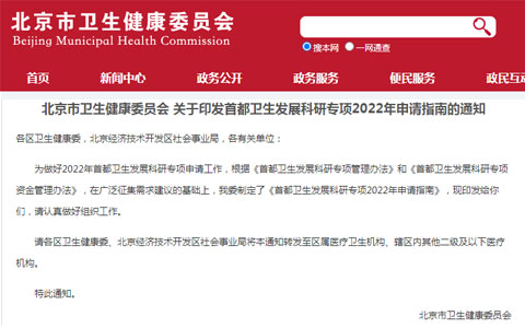 北京市衛(wèi)生健康委員會(huì)印發(fā)了《首都衛(wèi)生發(fā)展科研專項(xiàng) 2022 年申請(qǐng)指南》,旨在更好地推動(dòng) 2022 年首都衛(wèi)生發(fā)展科研專項(xiàng)申請(qǐng)工作,在指南中也提到了干細(xì)胞治療的研究規(guī)劃。指南中明確提出針對(duì)八類疾病鼓勵(lì)開(kāi)展干細(xì)胞治療的相關(guān)研究,并給予專項(xiàng)經(jīng)費(fèi)資助。(八類疾病之一為呼吸系統(tǒng)疾病,鼓勵(lì)研究方向?yàn)椋郝宰枞苑渭膊「杉?xì)胞治療的探索研究。)